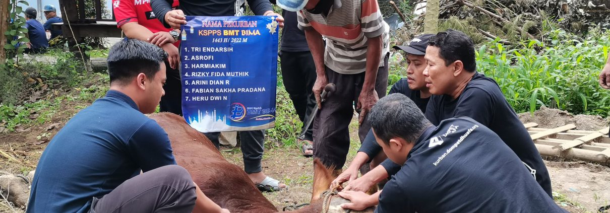 Muntilan, 12 Dzulhijah 1443 Hijriah bertepatan dengan 11 Juli 2022 Masehi BMT BIMA kembali menggelar acara tahunannya yaitu Tebar Hewan Kurban bersama BMT BIMA. Kali ini BMT BIMA bersama dengan LAZ MKU dan Dompet Dhuafa menyembelih sebanyak 2 ekor sapi yang berasal dari anggota BMT BIMA dan karyawan serta 150 ekor kambing yang dikolaborasikan bersama BMT Kharisma Magelang.