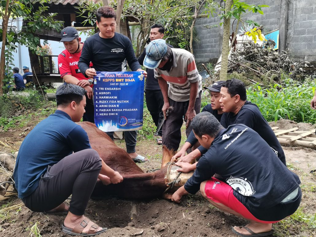 Muntilan, 12 Dzulhijah 1443 Hijriah bertepatan dengan 11 Juli 2022 Masehi BMT BIMA kembali menggelar acara tahunannya yaitu Tebar Hewan Kurban bersama BMT BIMA. Kali ini BMT BIMA bersama dengan LAZ MKU dan Dompet Dhuafa menyembelih sebanyak 2 ekor sapi yang berasal dari anggota BMT BIMA dan karyawan serta 150 ekor kambing yang dikolaborasikan bersama BMT Kharisma Magelang.