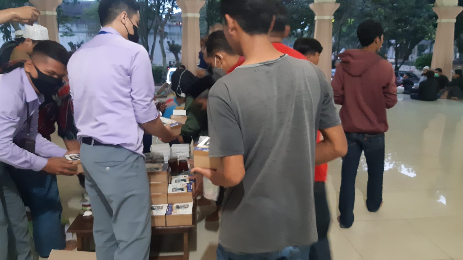Acara yang berlangsung kurang lebih sekitar 1 jam ini diakhiri dengan pembagian takjil berupa 100 buah nasi box kepada para jama’ah yang hadir dan tentu bagi para musyafir yang singgah di masjid tersebut untuk berbuka puasa.